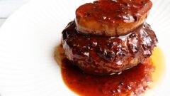 ハンバーグとフォアグラのソテーに、トリュフが香るペリグーソースをたっぷりかけたロッシーニ風ハンバーグ。